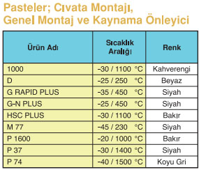Pasteler; Cıvata Montajı, Genel Montaj ve Kaynama Önleyici