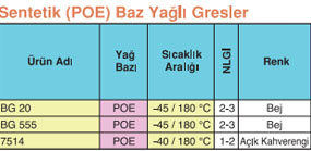 Plastik -plastik, plastik-metal ve kauçuk-metal aksamların yağlanmasında kullanılan katı yağlayıcılı sentetik ağır hizmet gresi. NLGI değeri 1 plastik dişlilerde yük altında çalışan aşınan plastik aksamlarda kullanılabilir.