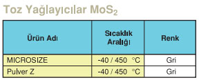 Yüksek oranda saflaştırılmış, parçacık çapı 3-4 mikrondan küçük molibdendisülfid tozu.